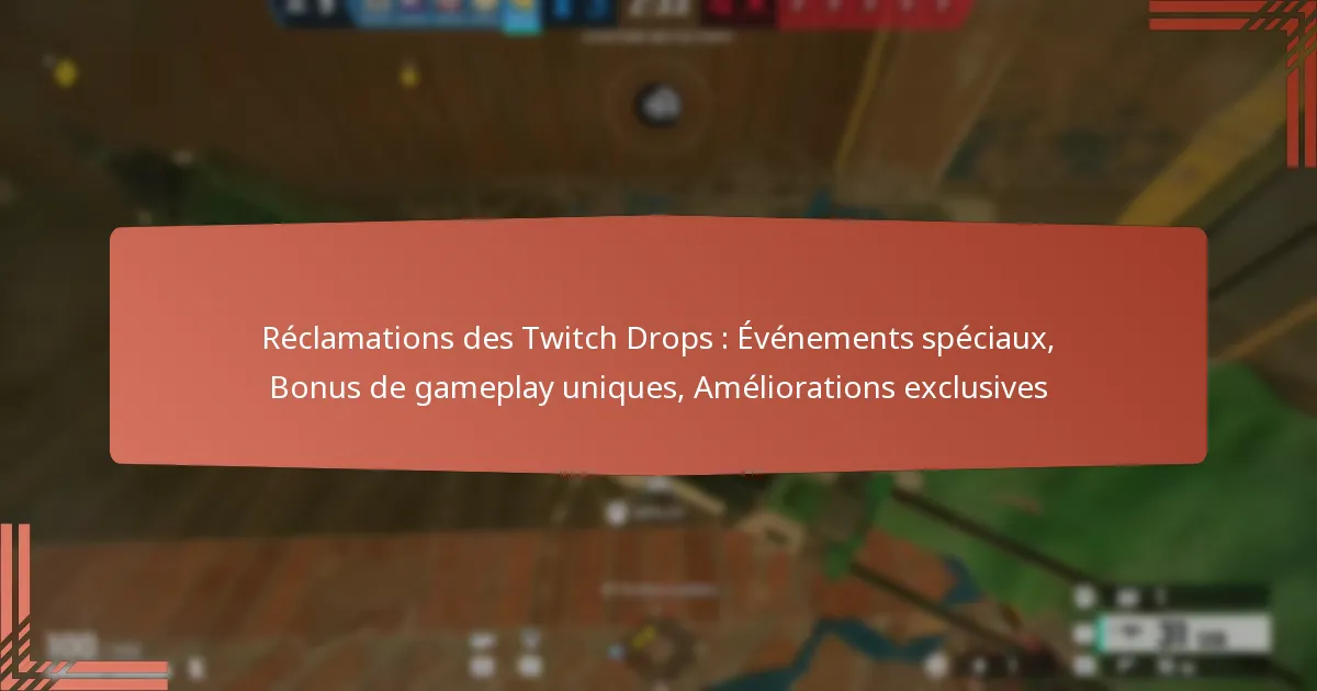 Les Twitch Drops offrent aux joueurs des bonus de gameplay uniques qui améliorent leur expérience de jeu lors d’événements spéciaux. Ces bonus peuvent inclure des objets exclusifs en jeu, des améliorations et des récompenses qui ne sont disponibles que pour une durée limitée, encourageant l’engagement des joueurs et la participation à la communauté.