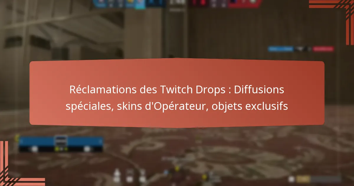 Les Twitch Drops sont des récompenses offertes aux spectateurs pour avoir regardé des streams spécifiques lors d’événements promotionnels. Ces drops incluent souvent des objets exclusifs dans le jeu, des skins d’opérateurs et d’autres bonus liés à des jeux ou événements particuliers.