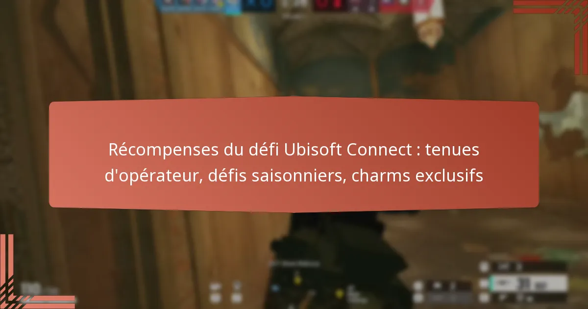 Les récompenses des défis Ubisoft Connect sont des incitations offertes aux joueurs pour avoir complété des défis spécifiques dans le jeu. Ces récompenses incluent des tenues d’opérateur exclusives, des défis saisonniers et des charms uniques qui améliorent le gameplay et l’engagement des joueurs.